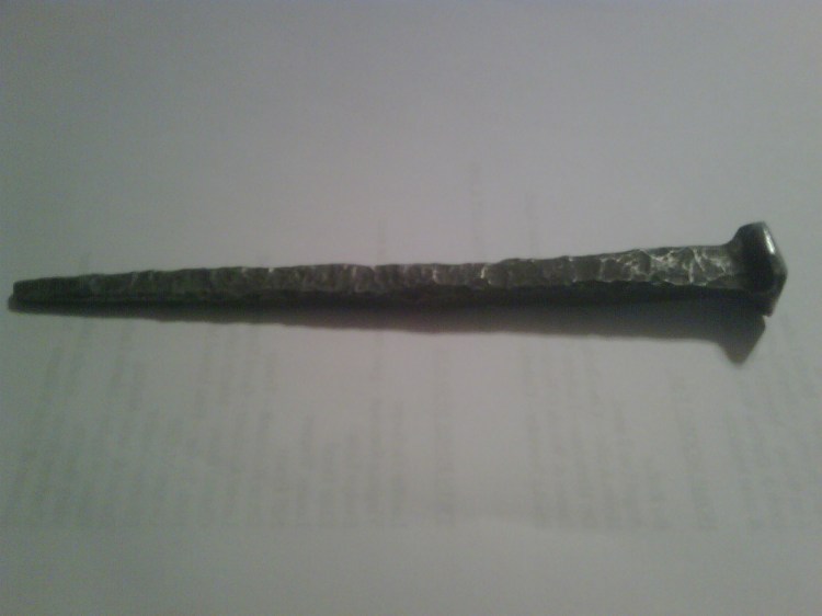 This morning I took a picture of the nail to place here as I spoke about it today in this devotion and here it is.