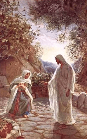 Early on the first day of the week, while it was still dark, Mary Magdalene came to the tomb and saw that the stone had been removed from the tomb. So she ran and went to Simon Peter and the other disciple, the one whom Jesus loved, and said to them, ‘They have taken the Lord out of the tomb, and we do not know where they have laid him.’ Then Peter and the other disciple set out and went towards the tomb. The two were running together, but the other disciple outran Peter and reached the tomb first. He bent down to look in and saw the linen wrappings lying there, but he did not go in. Then Simon Peter came, following him, and went into the tomb. He saw the linen wrappings lying there, and the cloth that had been on Jesus’ head, not lying with the linen wrappings but rolled up in a place by itself. Then the other disciple, who reached the tomb first, also went in, and he saw and believed; for as yet they did not understand the scripture, that he must rise from the dead. Then the disciples returned to their homes. But Mary stood weeping outside the tomb. As she wept, she bent over to look into the tomb; and she saw two angels in white, sitting where the body of Jesus had been lying, one at the head and the other at the feet. They said to her, ‘Woman, why are you weeping?’ She said to them, ‘They have taken away my Lord, and I do not know where they have laid him.’ When she had said this, she turned round and saw Jesus standing there, but she did not know that it was Jesus. Jesus said to her, ‘Woman, why are you weeping? For whom are you looking?’ Supposing him to be the gardener, she said to him, ‘Sir, if you have carried him away, tell me where you have laid him, and I will take him away.’ Jesus said to her, ‘Mary!’ She turned and said to him in Hebrew, ‘Rabbouni!’ (which means Teacher). Jesus said to her, ‘Do not hold on to me, because I have not yet ascended to the Father. But go to my brothers and say to them, “I am ascending to my Father and your Father, to my God and your God.” ’ Mary Magdalene went and announced to the disciples, ‘I have seen the Lord’; and she told them that he had said these things to her. (John 20:1-18, NRSV)