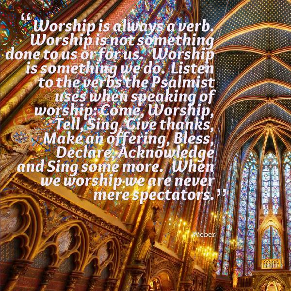 So do not think you are coming to worship to recharge your battery, you are coming to be a full participant in a declaration of how worthy our God is! We are not spectators but full on participants in an adoration of the one who made us!