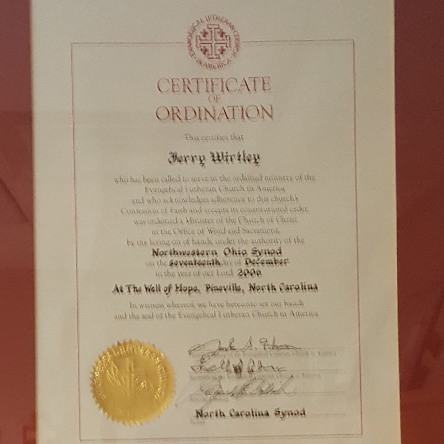 Your Certificate of Ordination has made many people happy. I have listened to many pastors over the years and you are in the top 2. I can’t decide which position you are in. Your delivery of the true word of God is unique and very inspiring. Your skills obviously are a blessing that we are honored to hear. Your dailey devotions give me joy and I look forward to them. God’s blessings on your day.