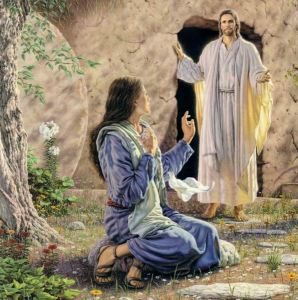 Early on the first day of the week, while it was still dark, Mary Magdalene came to the tomb and saw that the stone had been removed from the tomb. So she ran and went to Simon Peter and the other disciple, the one whom Jesus loved, and said to them, “They have taken the Lord out of the tomb, and we do not know where they have laid him.” Then Peter and the other disciple set out and went toward the tomb. The two were running together, but the other disciple outran Peter and reached the tomb first. He bent down to look in and saw the linen wrappings lying there, but he did not go in. Then Simon Peter came, following him, and went into the tomb. He saw the linen wrappings lying there, and the cloth that had been on Jesus’ head, not lying with the linen wrappings but rolled up in a place by itself. Then the other disciple, who reached the tomb first, also went in, and he saw and believed; for as yet they did not understand the scripture, that he must rise from the dead. Then the disciples returned to their homes. But Mary stood weeping outside the tomb. As she wept, she bent over to look into the tomb; and she saw two angels in white, sitting where the body of Jesus had been lying, one at the head and the other at the feet. They said to her, “Woman, why are you weeping?” She said to them, “They have taken away my Lord, and I do not know where they have laid him.” When she had said this, she turned around and saw Jesus standing there, but she did not know that it was Jesus. Jesus said to her, “Woman, why are you weeping? Whom are you looking for?” Supposing him to be the gardener, she said to him, “Sir, if you have carried him away, tell me where you have laid him, and I will take him away.” Jesus said to her, “Mary!” She turned and said to him in Hebrew, “Rabbouni!” (which means Teacher). Jesus said to her, “Do not hold on to me, because I have not yet ascended to the Father. But go to my brothers and say to them, ‘I am ascending to my Father and your Father, to my God and your God.’” Mary Magdalene went and announced to the disciples, “I have seen the Lord”; and she told them that he had said these things to her. (John 20:1-18, NRSV)