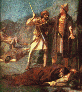 Then David set out and came to the place where Saul had encamped; and David saw the place where Saul lay, with Abner son of Ner, the commander of his army. Saul was lying within the encampment, while the army was encamped around him. Then David said to Ahimelech the Hittite, and to Joab’s brother Abishai son of Zeruiah, “Who will go down with me into the camp to Saul?” Abishai said, “I will go down with you.” So David and Abishai went to the army by night; there Saul lay sleeping within the encampment, with his spear stuck in the ground at his head; and Abner and the army lay around him. Abishai said to David, “God has given your enemy into your hand today; now therefore let me pin him to the ground with one stroke of the spear; I will not strike him twice.” But David said to Abishai, “Do not destroy him; for who can raise his hand against the Lord’s anointed, and be guiltless?” David said, “As the Lord lives, the Lord will strike him down; or his day will come to die; or he will go down into battle and perish. The Lord forbid that I should raise my hand against the Lord’s anointed; but now take the spear that is at his head, and the water jar, and let us go.” So David took the spear that was at Saul’s head and the water jar, and they went away. No one saw it, or knew it, nor did anyone awake; for they were all asleep, because a deep sleep from the Lord had fallen upon them. Then David went over to the other side, and stood on top of a hill far away, with a great distance between them. David called to the army and to Abner son of Ner, saying, “Abner! Will you not answer?” Then Abner replied, “Who are you that calls to the king?” David said to Abner, “Are you not a man? Who is like you in Israel? Why then have you not kept watch over your lord the king? For one of the people came in to destroy your lord the king. This thing that you have done is not good. As the Lordlives, you deserve to die, because you have not kept watch over your lord, the Lord’s anointed. See now, where is the king’s spear, or the water jar that was at his head?” Saul recognized David’s voice, and said, “Is this your voice, my son David?” David said, “It is my voice, my lord, O king.”And he added, “Why does my lord pursue his servant? For what have I done? What guilt is on my hands? Now therefore let my lord the king hear the words of his servant. If it is the Lord who has stirred you up against me, may he accept an offering; but if it is mortals, may they be cursed before the Lord, for they have driven me out today from my share in the heritage of the Lord, saying, ‘Go, serve other gods.’ Now therefore, do not let my blood fall to the ground, away from the presence of the Lord; for the king of Israel has come out to seek a single flea, like one who hunts a partridge in the mountains.” Then Saul said, “I have done wrong; come back, my son David, for I will never harm you again, because my life was precious in your sight today; I have been a fool, and have made a great mistake.” David replied, “Here is the spear, O king! Let one of the young men come over and get it. The Lord rewards everyone for his righteousness and his faithfulness; for the Lord gave you into my hand today, but I would not raise my hand against the Lord’s anointed. As your life was precious today in my sight, so may my life be precious in the sight of the Lord, and may he rescue me from all tribulation.” Then Saul said to David, “Blessed be you, my son David! You will do many things and will succeed in them.” So David went his way, and Saul returned to his place. (1 Samuel 26:5-25, NRSV)
