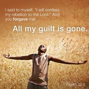 Then I acknowledged my sin to you, and I did not hide my iniquity; I said, “I will confess my transgressions to the Lord,” and you forgave the guilt of my sin. Selah (Psalm 32:5, NRSV)