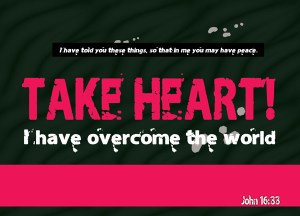 “I have said these things to you in figures of speech. The hour is coming when I will no longer speak to you in figures, but will tell you plainly of the Father. On that day you will ask in my name. I do not say to you that I will ask the Father on your behalf; for the Father himself loves you, because you have loved me and have believed that I came from God. I came from the Father and have come into the world; again, I am leaving the world and am going to the Father.” His disciples said, “Yes, now you are speaking plainly, not in any figure of speech! Now we know that you know all things, and do not need to have anyone question you; by this we believe that you came from God.” Jesus answered them, “Do you now believe? The hour is coming, indeed it has come, when you will be scattered, each one to his home, and you will leave me alone. Yet I am not alone because the Father is with me. I have said this to you, so that in me you may have peace. In the world you face persecution. But take courage; I have conquered the world!” (John 16:25-33, NRSV)