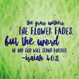 You see every promise we read from God will never fade away. The grass withers and the flowers fade, but the word of God will always be true. Nothing will cause the promises of God to not be fulfilled.