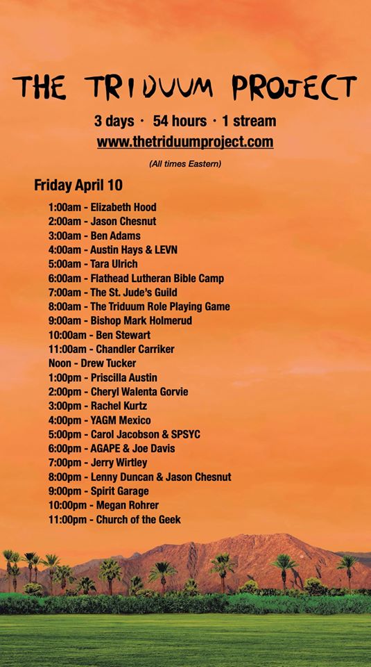 Well, some of my friends have created an online streamed Easter Vigil. It starts at 6 pm EST on April 9 and goes until 12 am EST on April 12. I will be on this live stream at 6 pm EST on April 10.