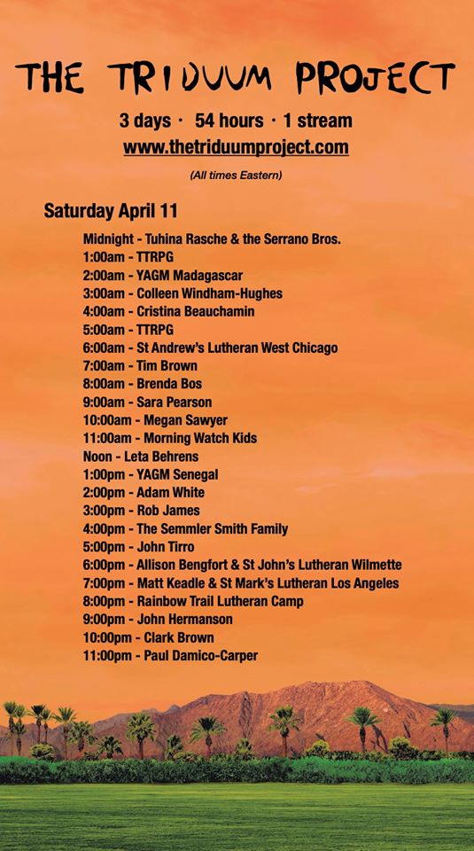 Below are the graphics of the schedule and the link for the whole event is thetriduumproject.com